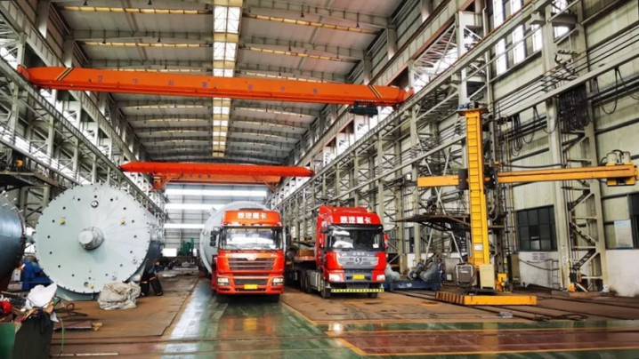 扬州惠通科技股份有限公司生产车间,双氧水装置设备正在装车准备发货。